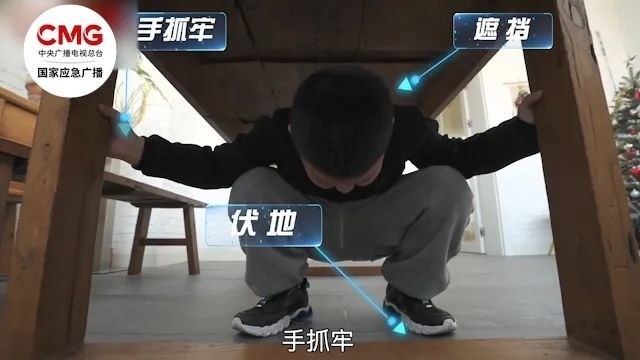 2. 扶稳抓牢:若找到相对安全的避难所,如桌子下面,一定要抓住桌腿或其他坚固的物体,避免因移动造成二次伤害。
